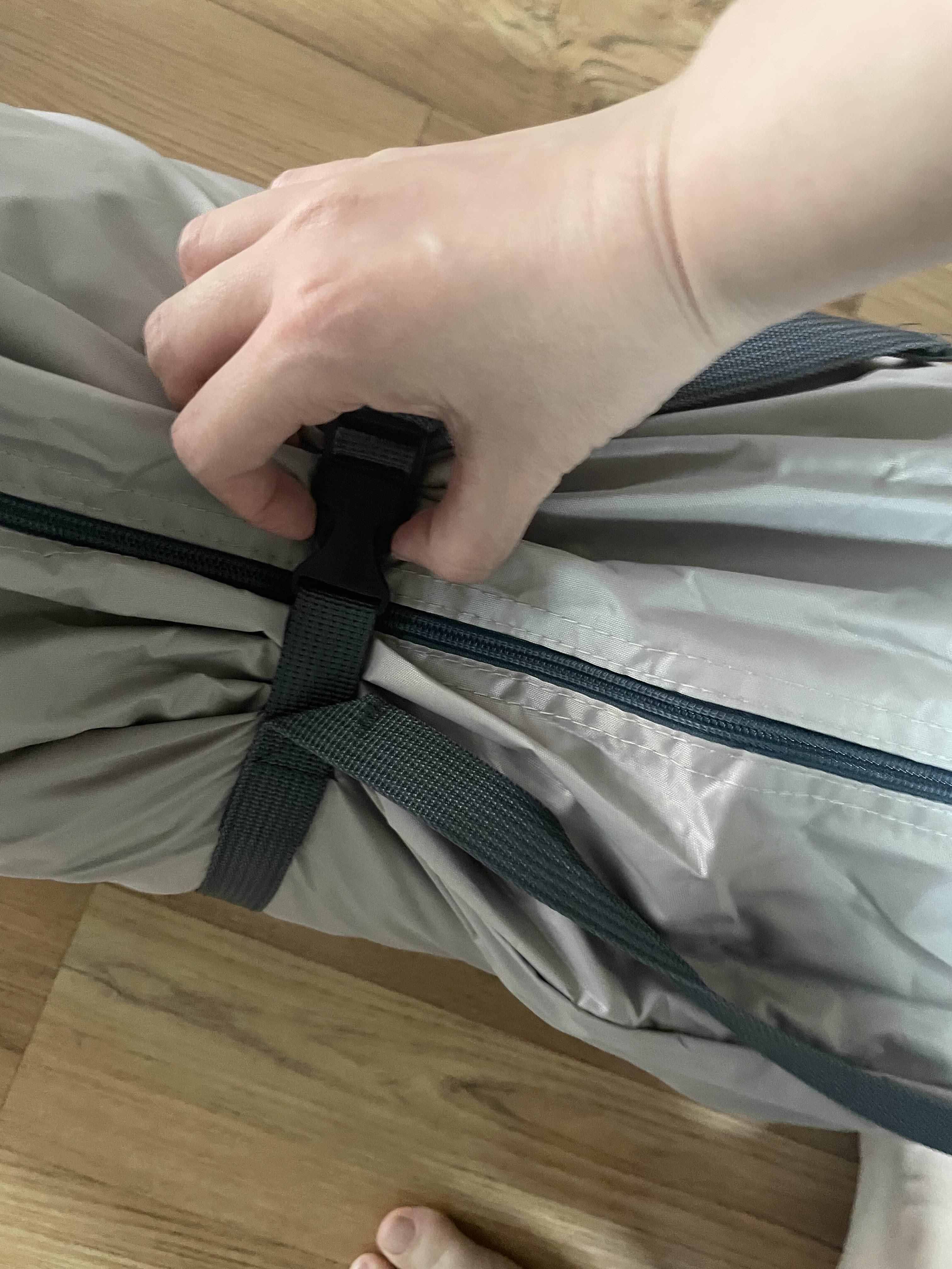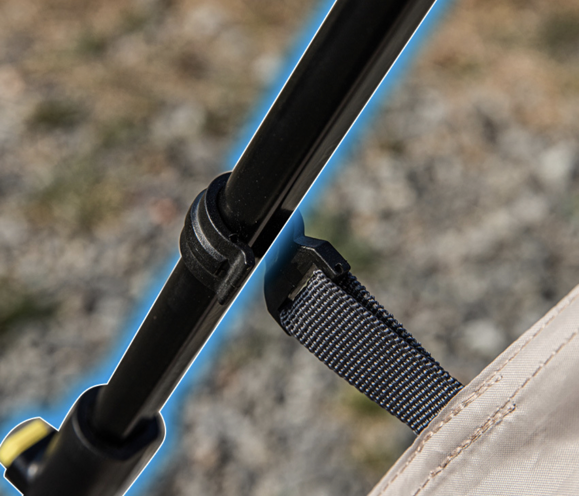 아까 텐트의 폴데를 펴주면 노란 버튼이 나온부분을 눌러주면 접어집니다.
