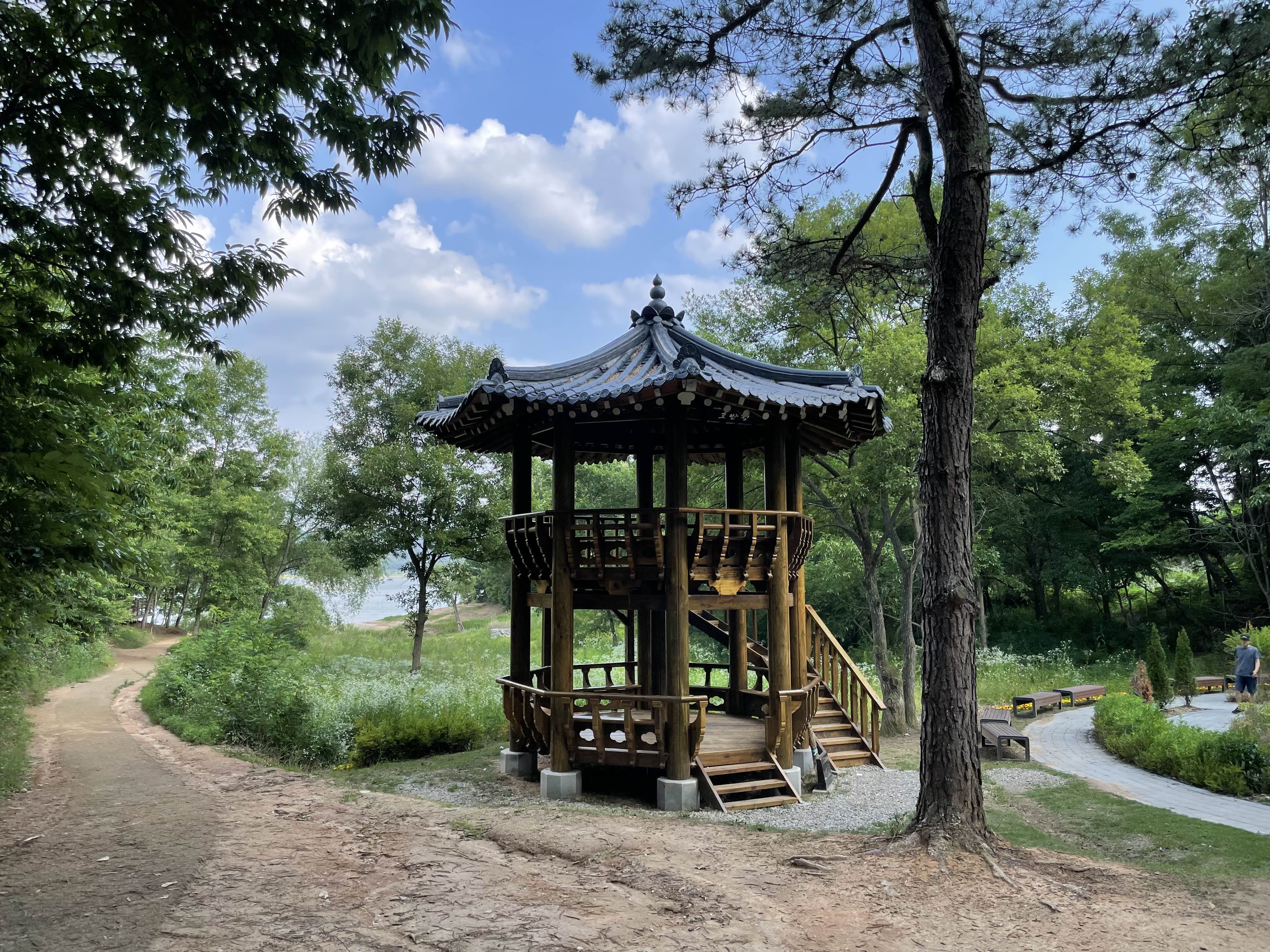 얼마 걷지는 않았지만, 이제 우측에 정자 2층 에 잔깐 올라, 잠시 풍경을 감상하고 다시 내려와 다시 걷습니다.