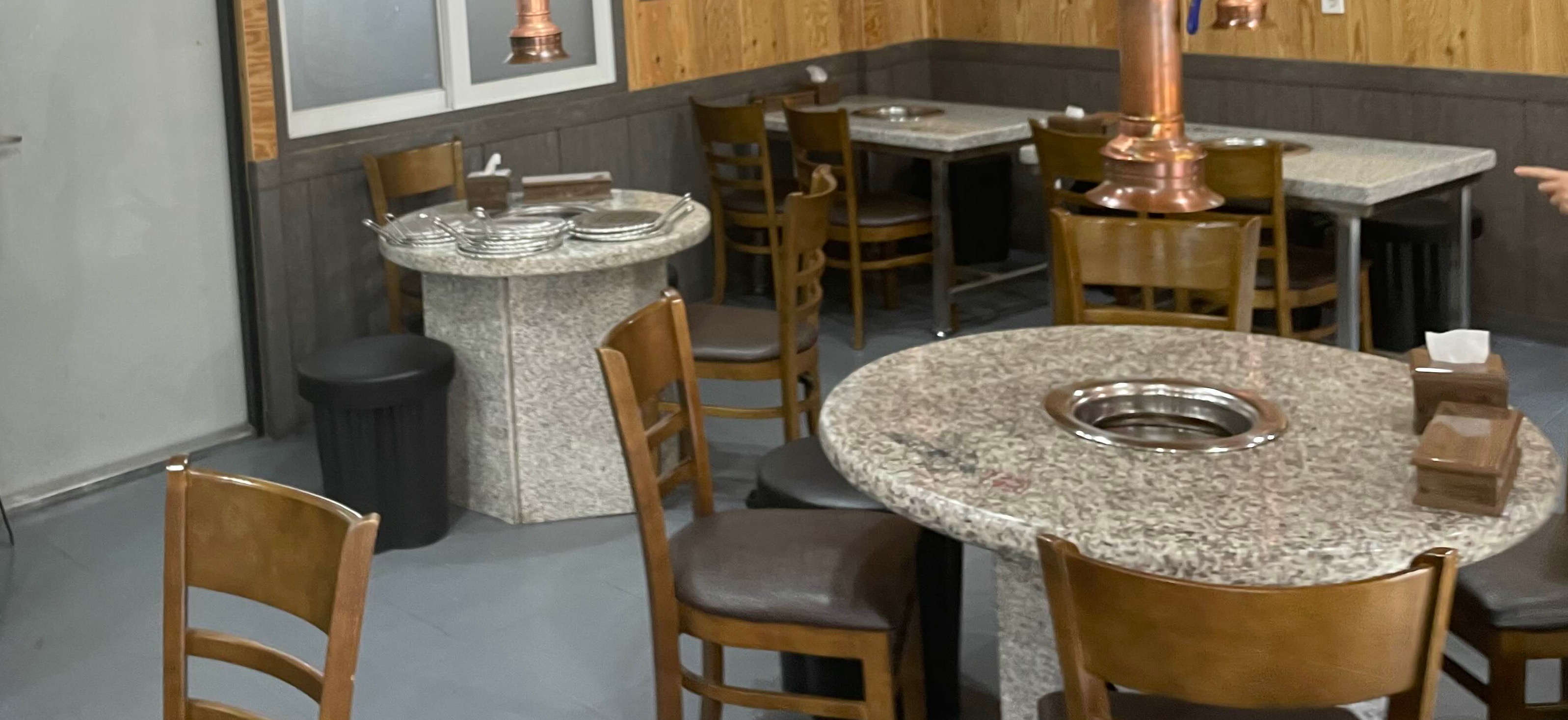실내에는 동그란 테이블에 대리석 테이블로 되어 있습니다.