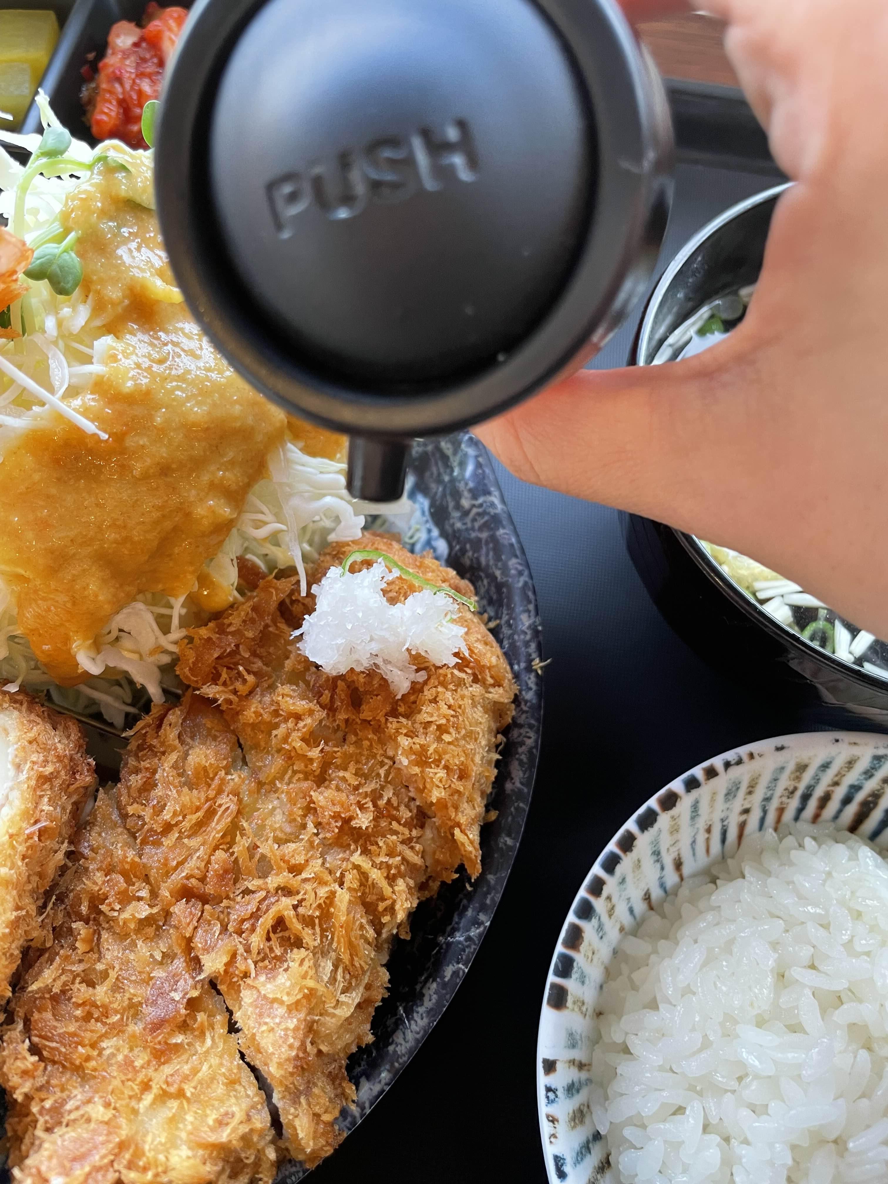 이 무를 돈까스 위에 올리고 무를 올린 돈까스에