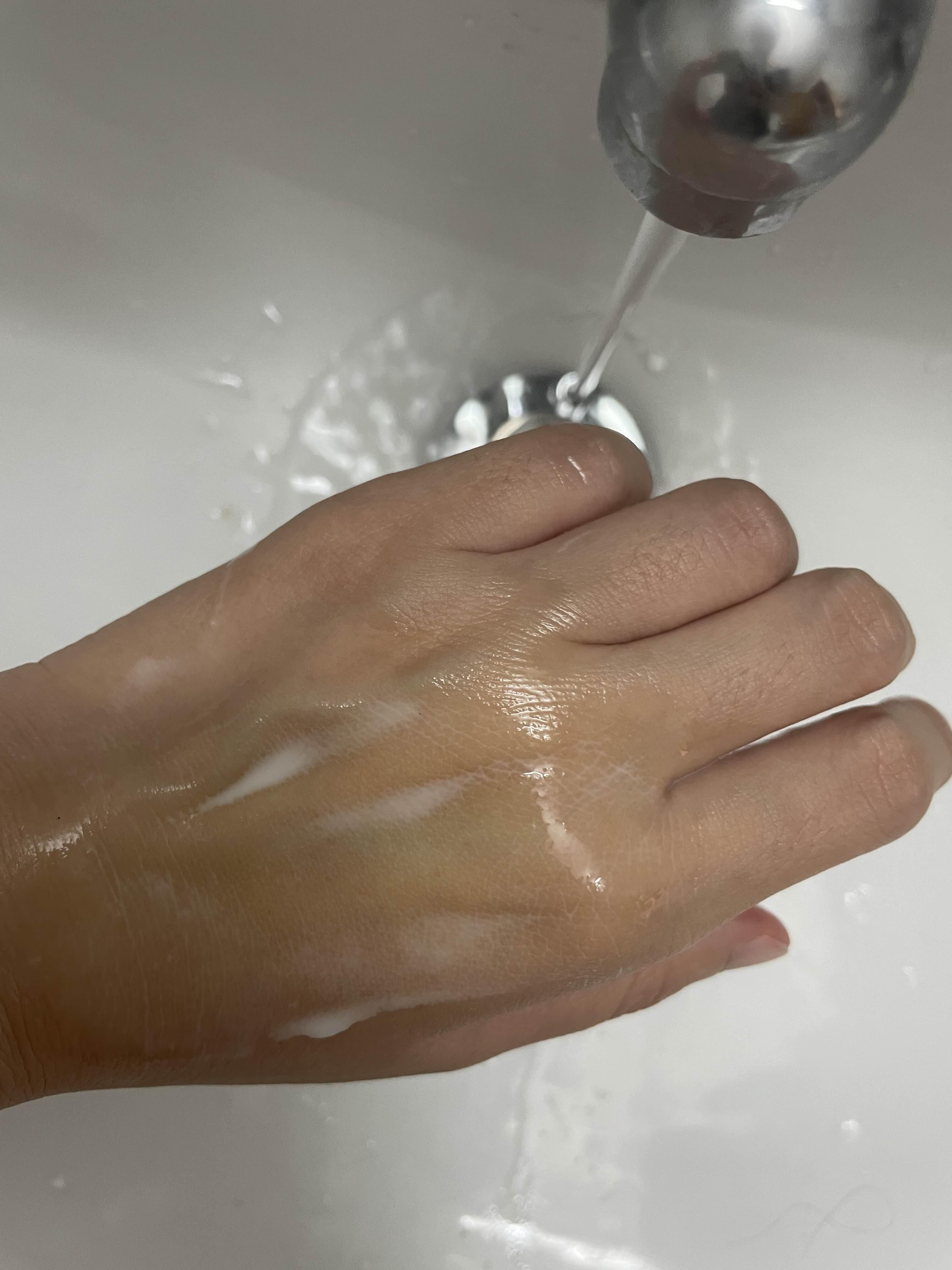 물과 만나면 살짝 하얀 거품처럼 나타납니다.