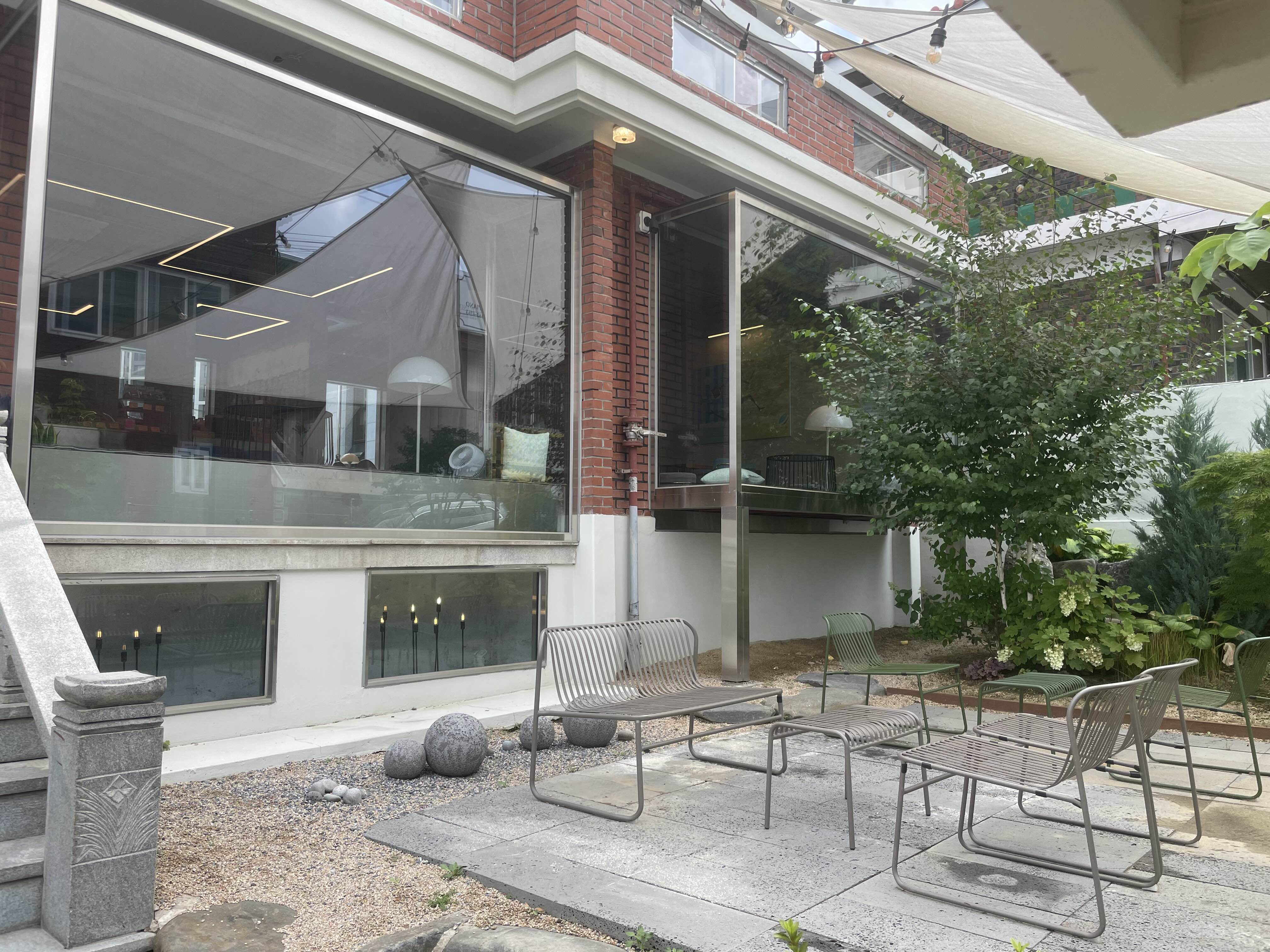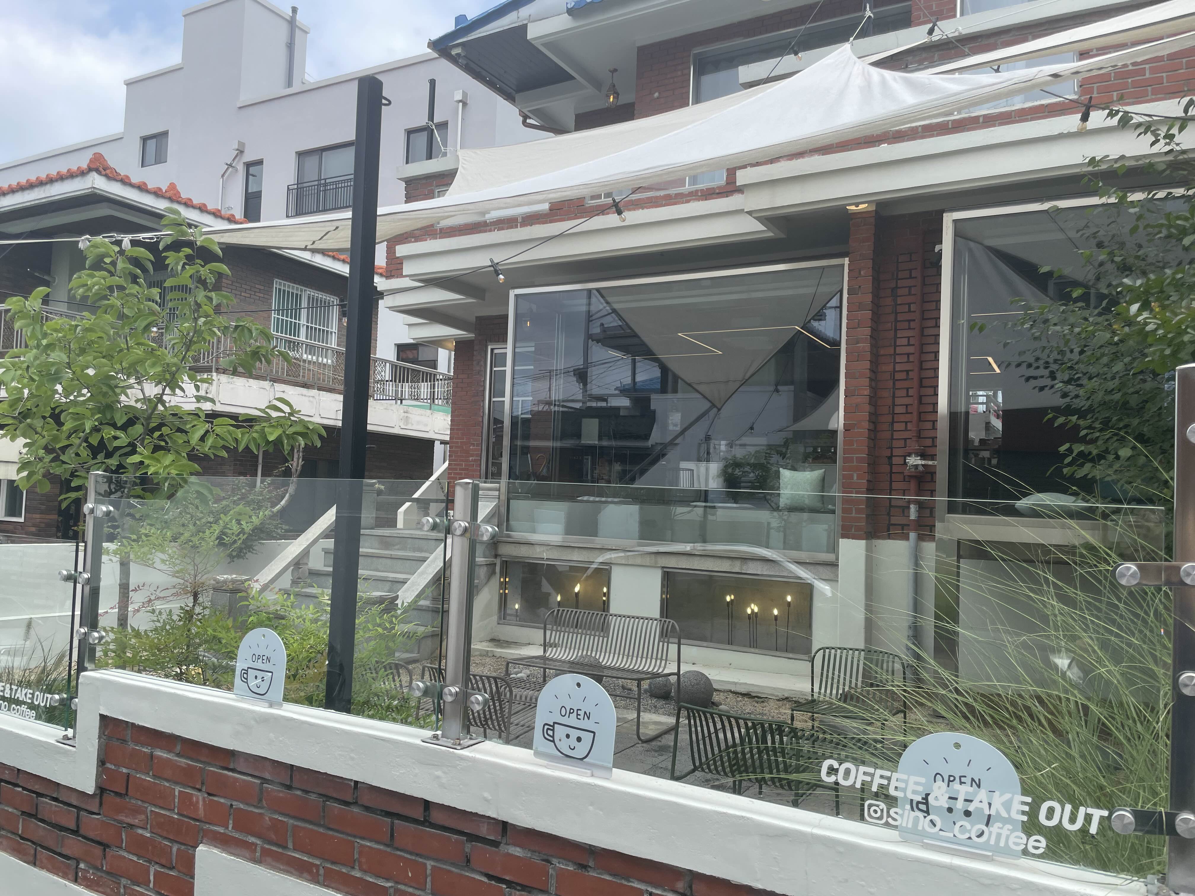 주택을 개조해서 만든 카페로 1층과 2층 그리고 외부를