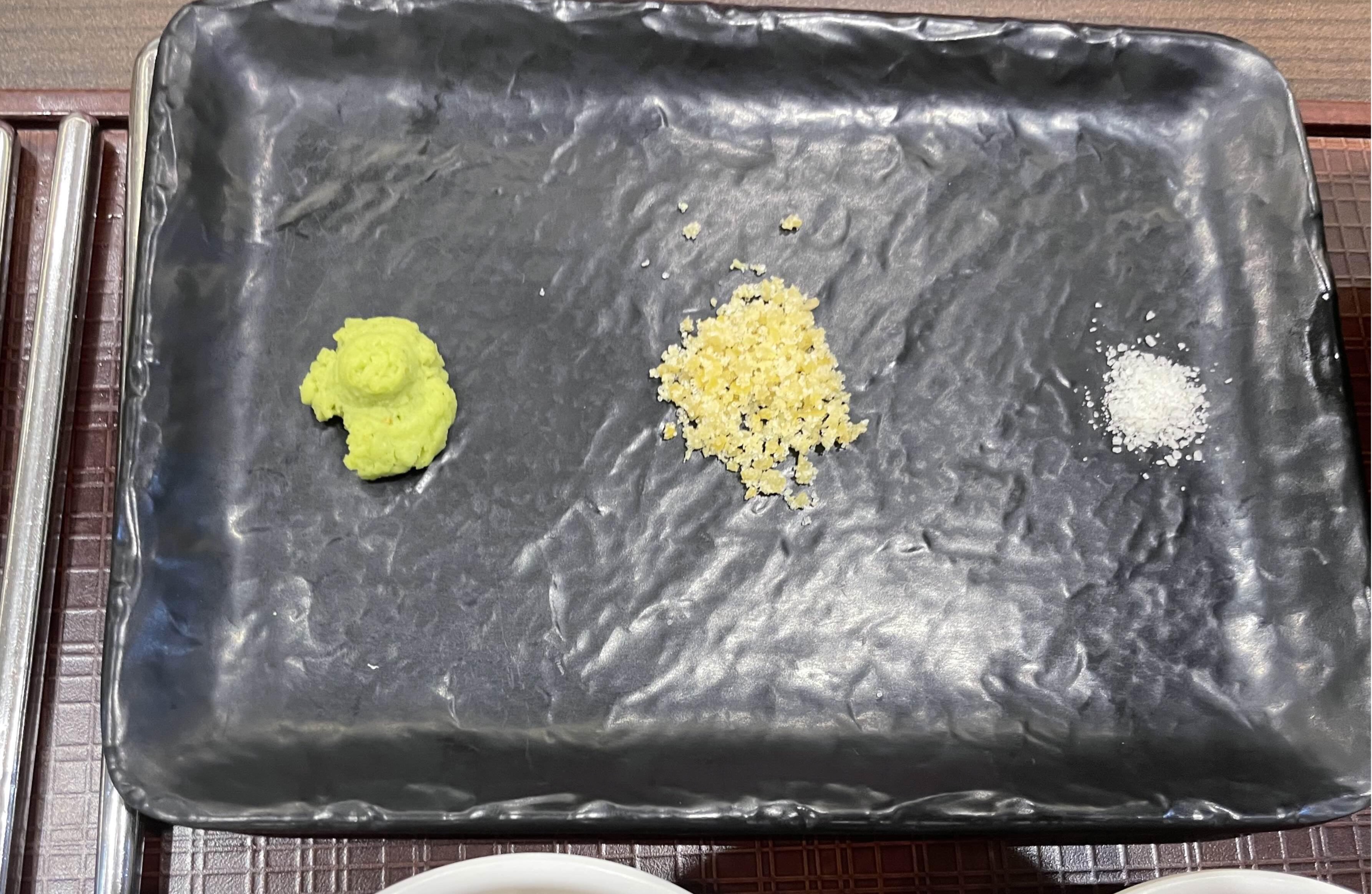 와사비, 레몬소금, 화이트 트러플 소금이 나옵니다.