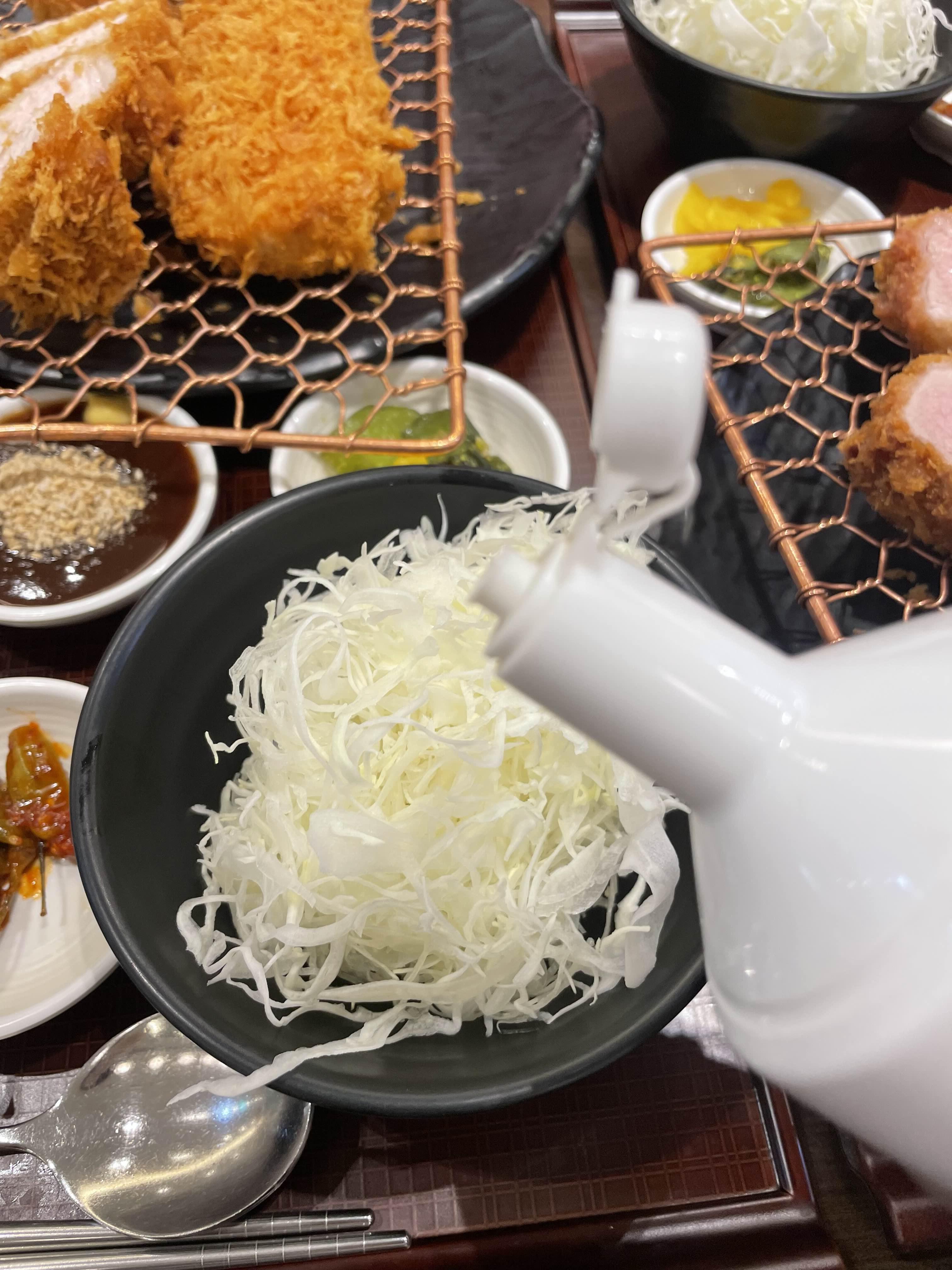 양배추 샐러드, 절임류 그리고 장국을 주어 잡아주는