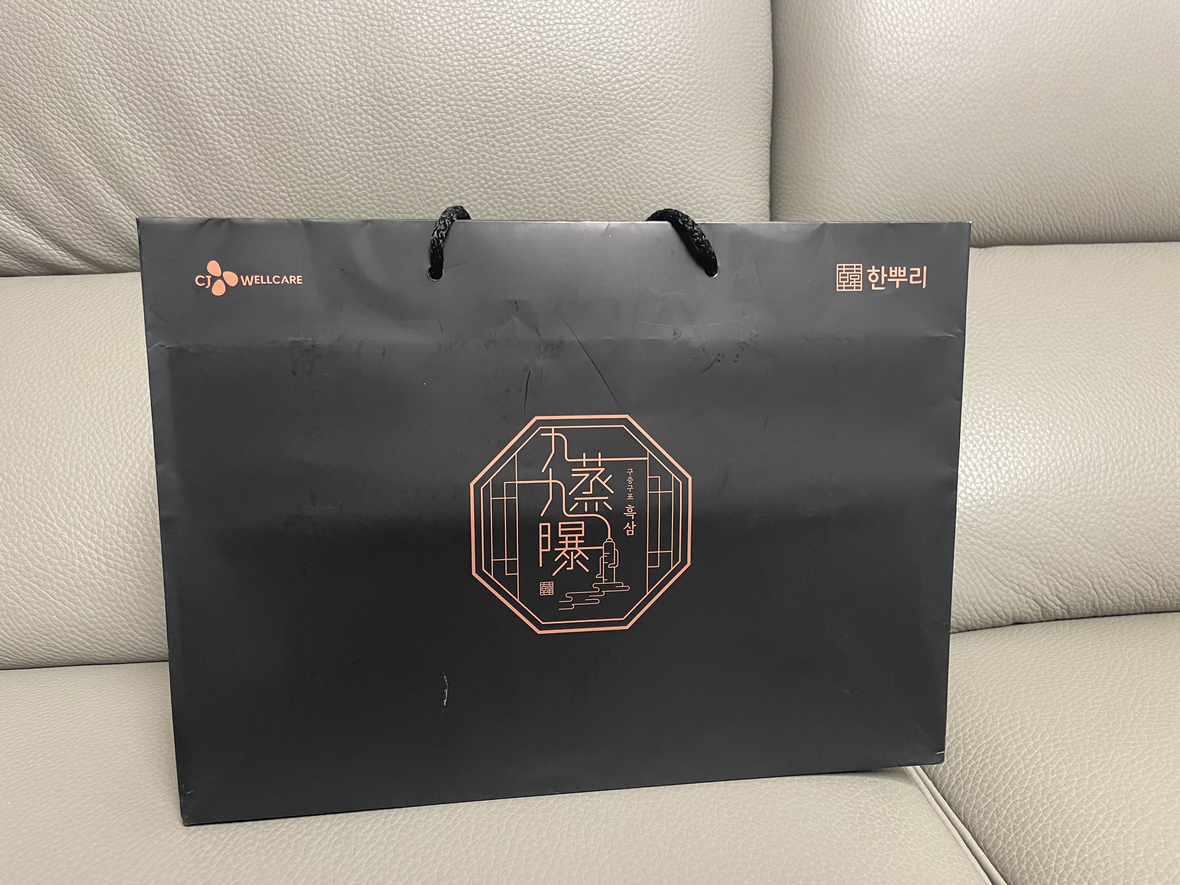 그런데 이 한뿌리는 쇼핑백만 주는 반면, 정관장을 구매하면 제품에 따라 보자기에 예쁘게 포장해서 준다.
