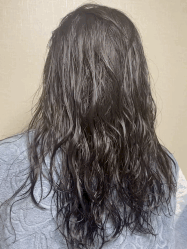 타월로 머리카락의 물기를 적당히 제거한 후 적당량 (500원 정도 크기)를 손에 덜어서
