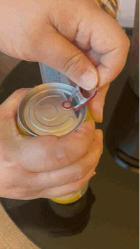 뚜껑을 딸때는 수직으로 반듯하게 끌어 올려야 만 뚜겅이 따야합니다. 잘못하면 캔 꾸껑이 없어질 수 있으니 주의 해야합니다.