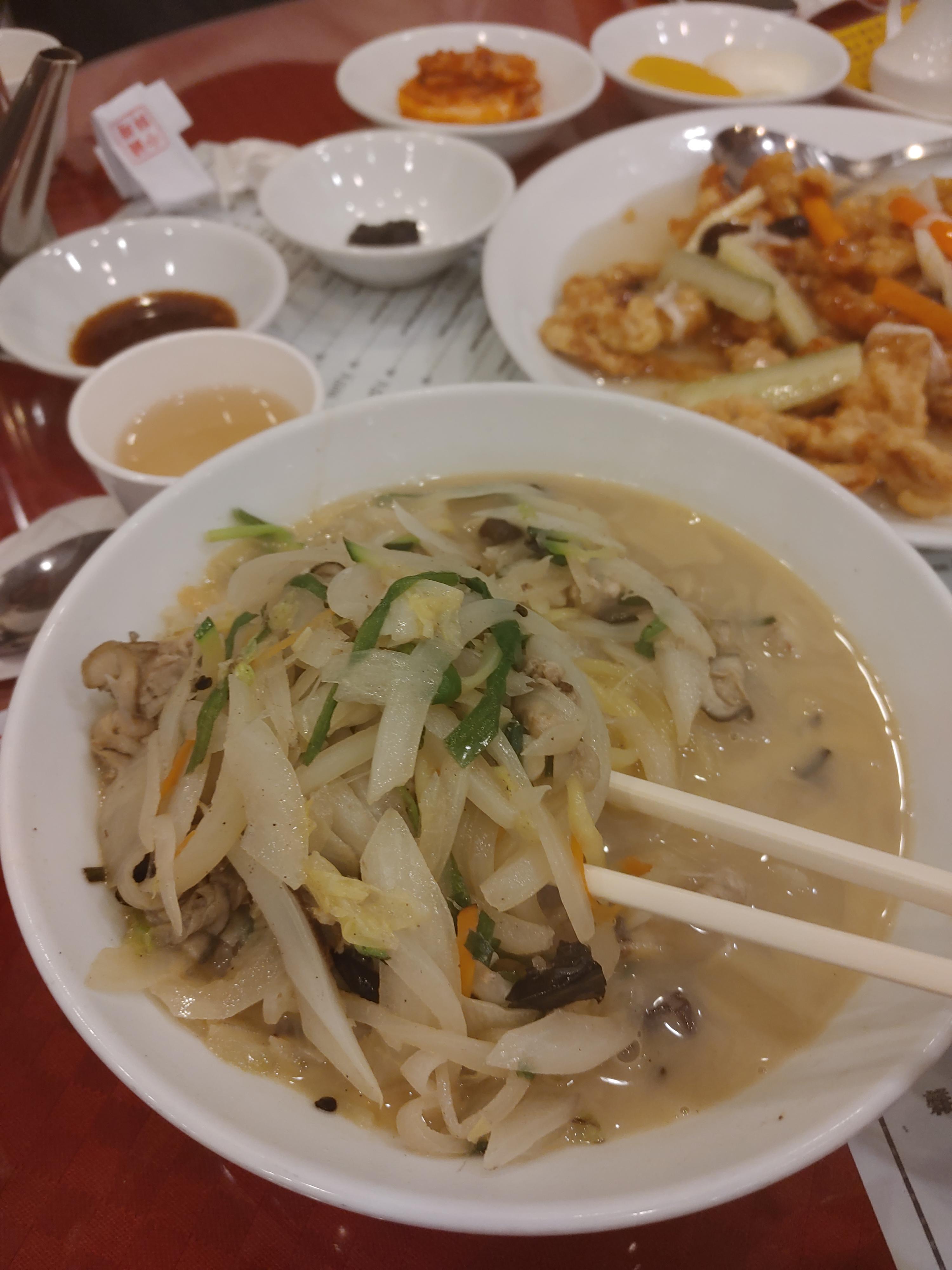 하얀 국물에 해물 맛과 고기 맛의진한 국물 맛이 납니다.