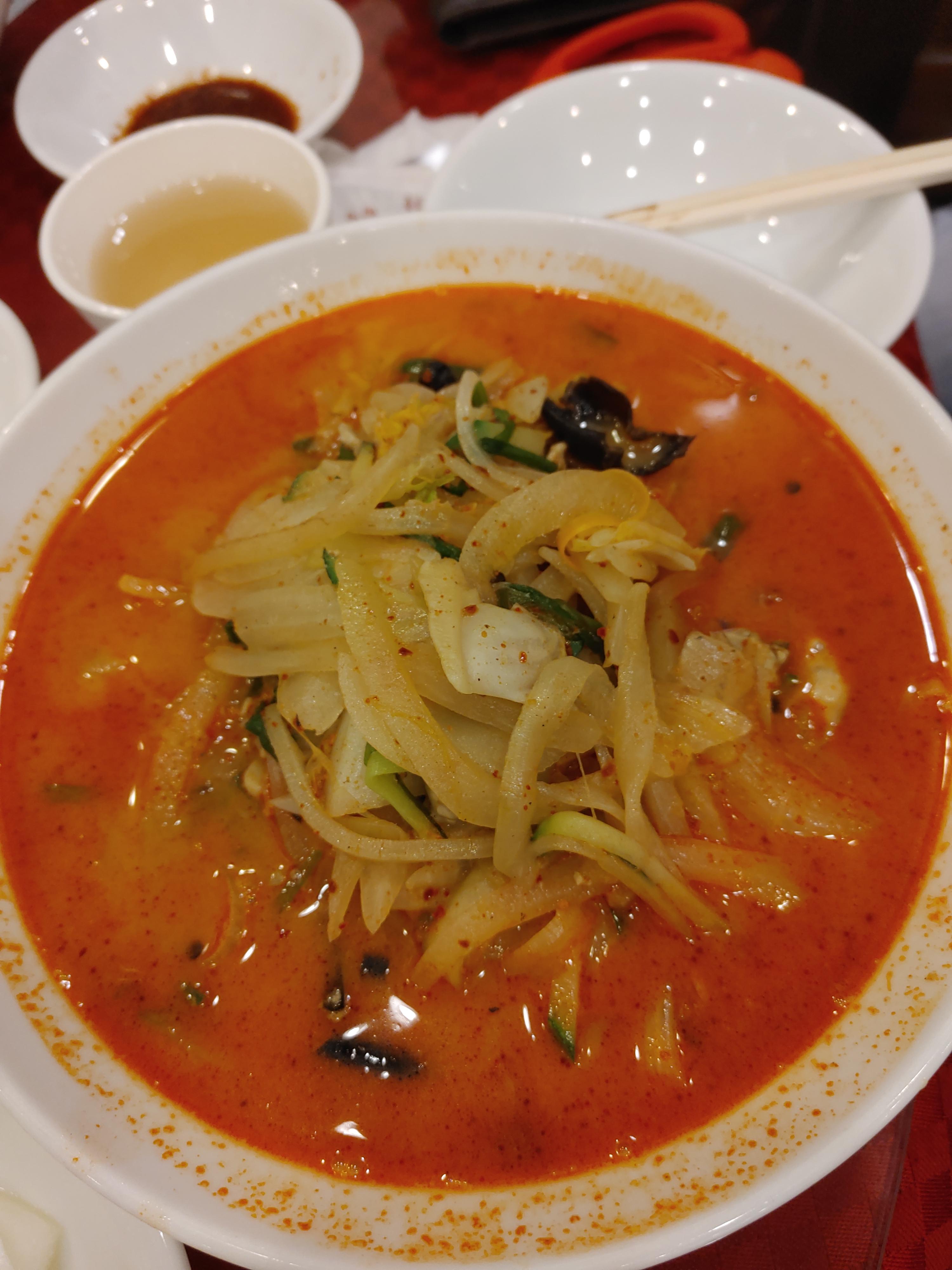 짬봉 같은데, 하얀국물과 빨강국물니 있습니다.