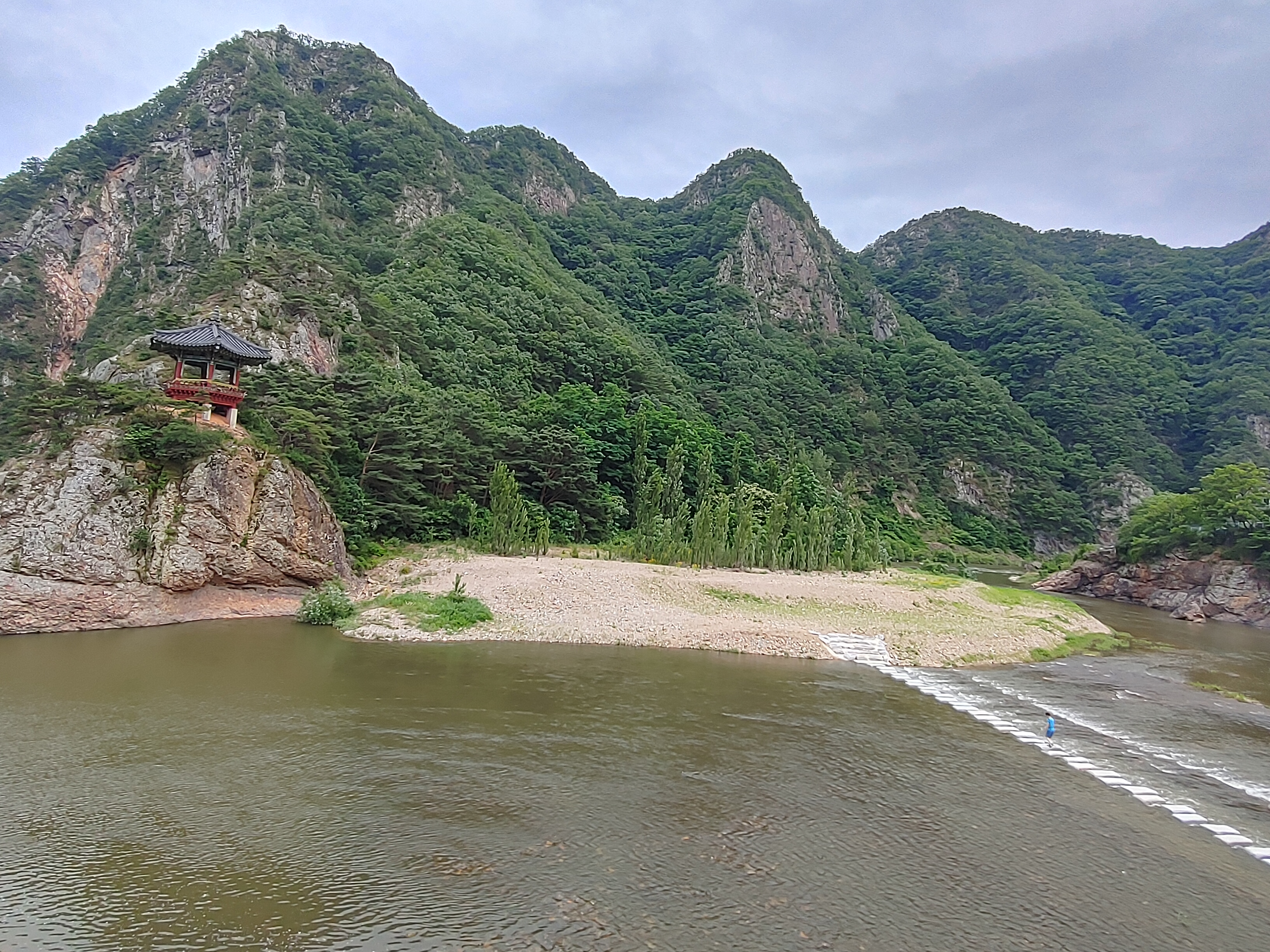 월류봉 주차장에 들어서면 눈앞에 펼쳐진, 산 물, 풍경이 너무 멋지다.