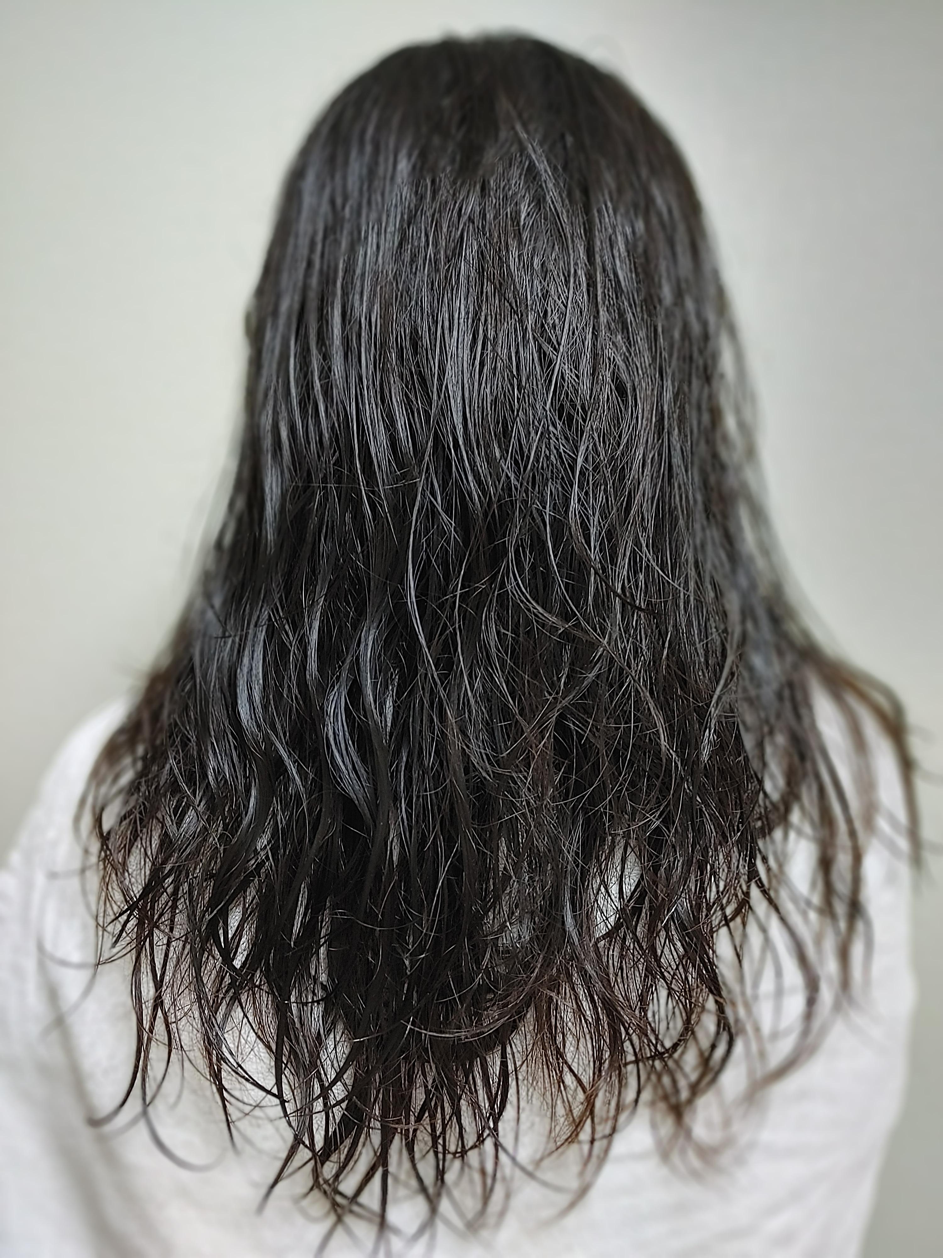 머리를 감고 수건으로 머리를 말리고(물기 제거)