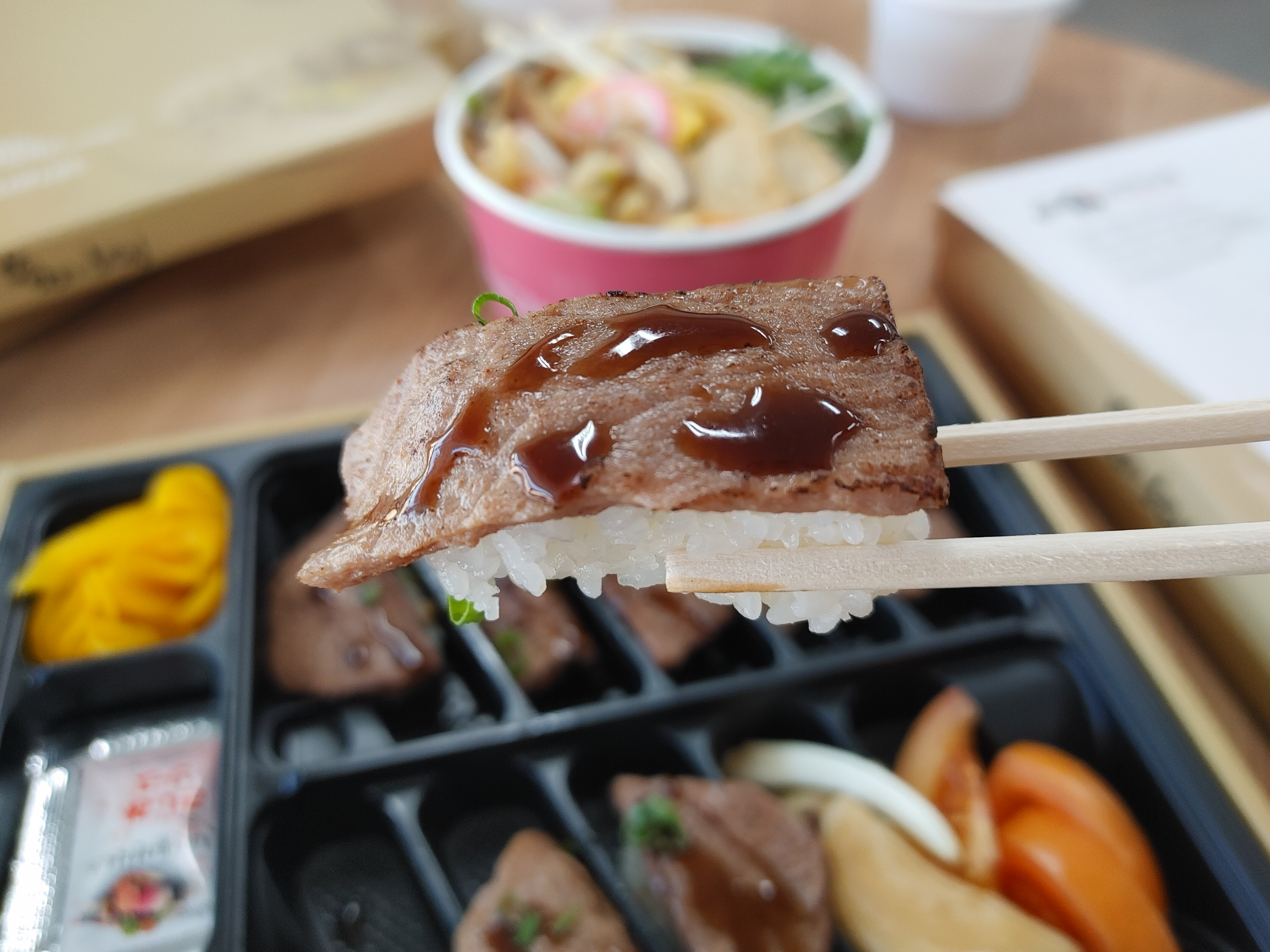 소고기 위에 불고기 소스의 달콤함이 있습니다.