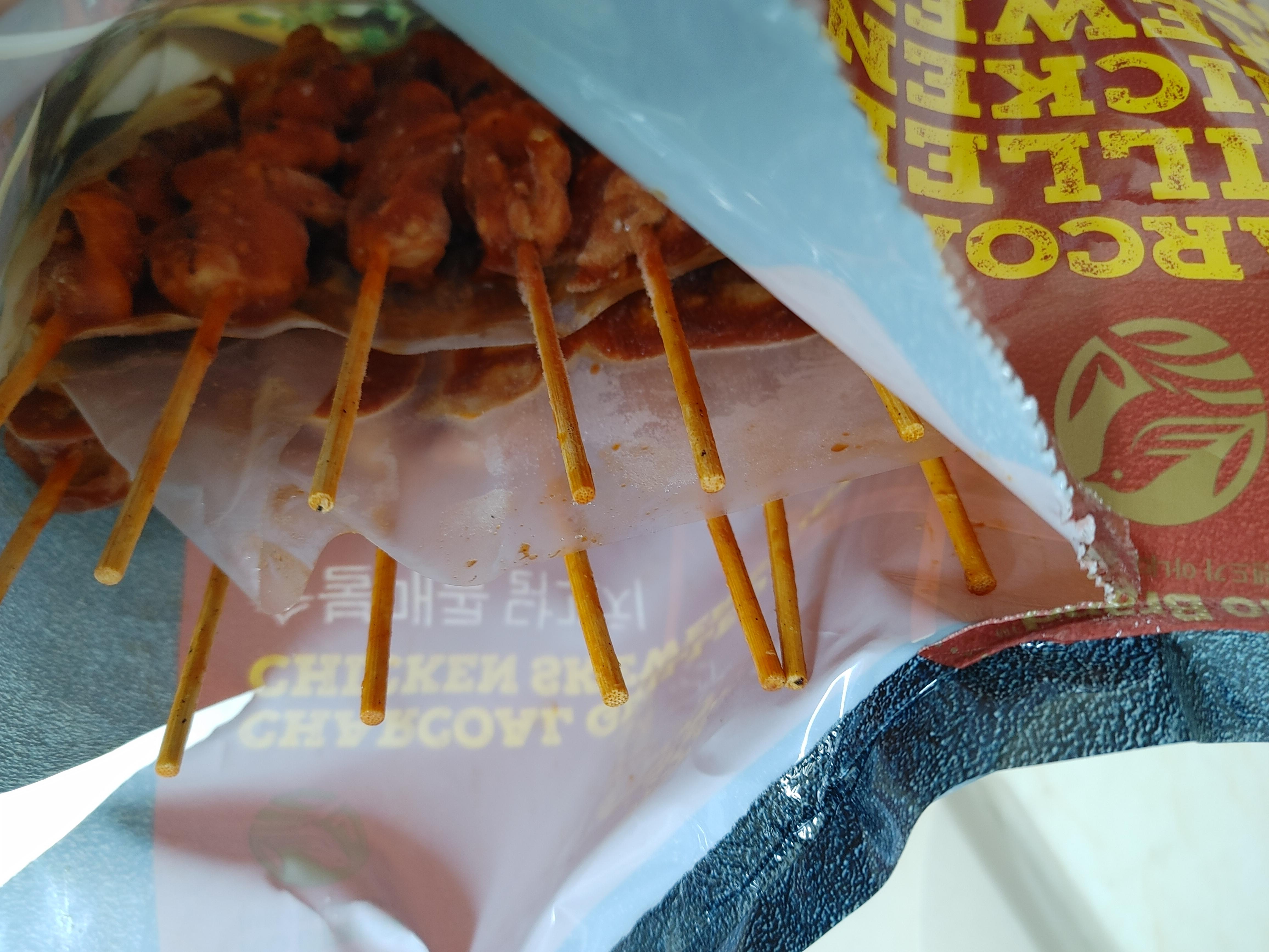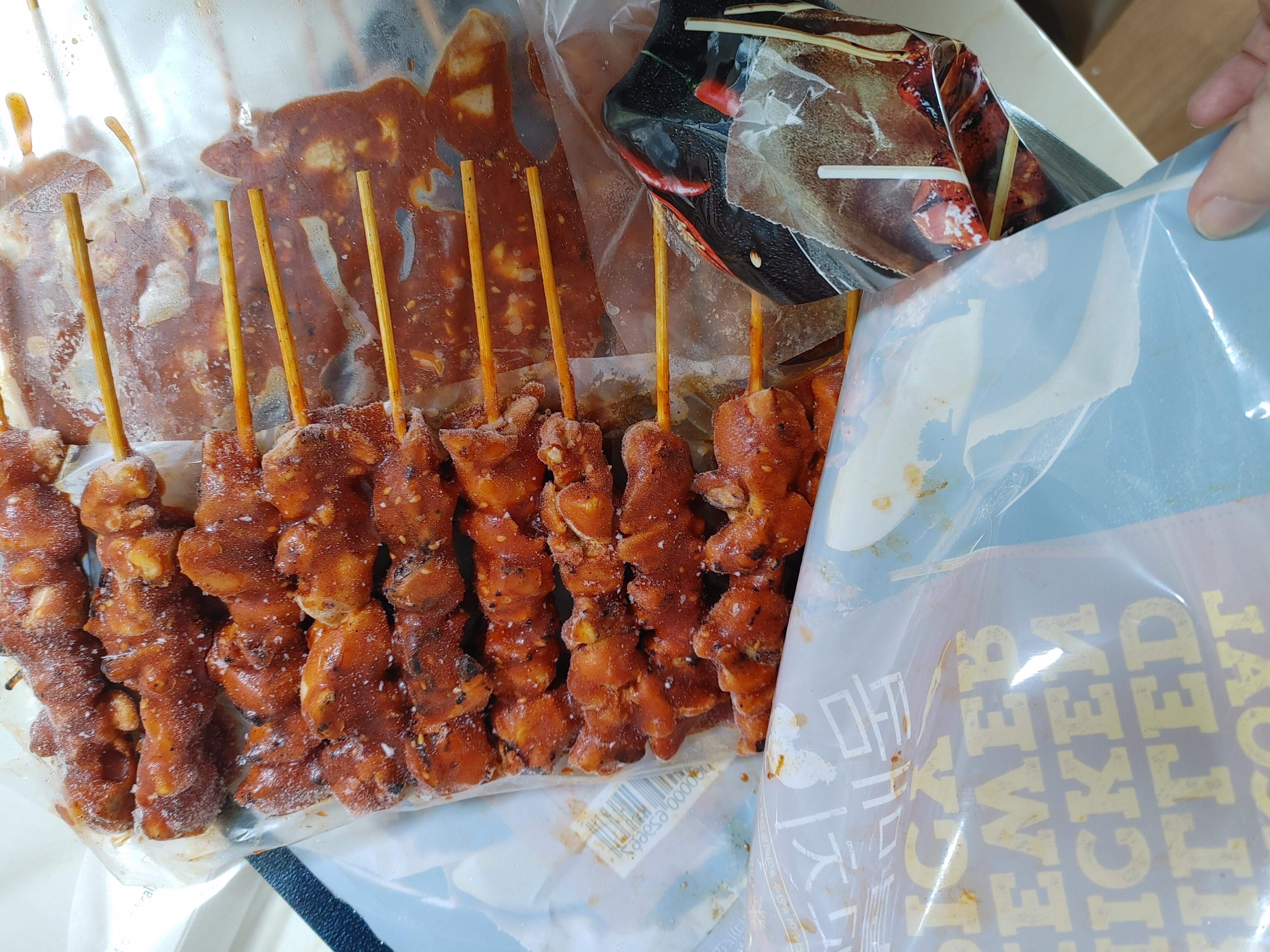 슬쩍 열어보니.. 닭꼬치 사이사이에 비닐로 분리를 해두었습니다.